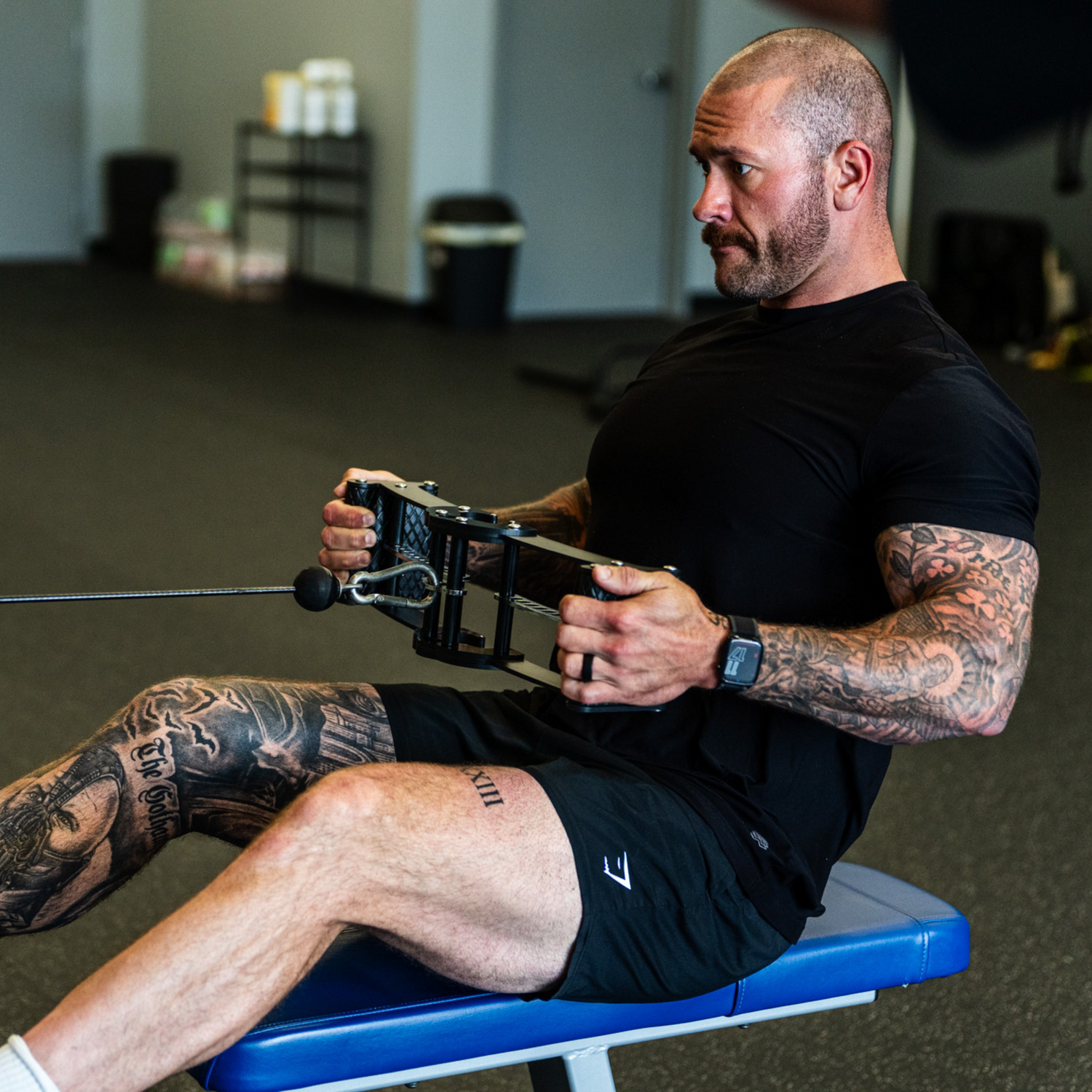 Use the pad grips or the multi grip attachment for landmine rows with optimal range of motion and joint mobility.